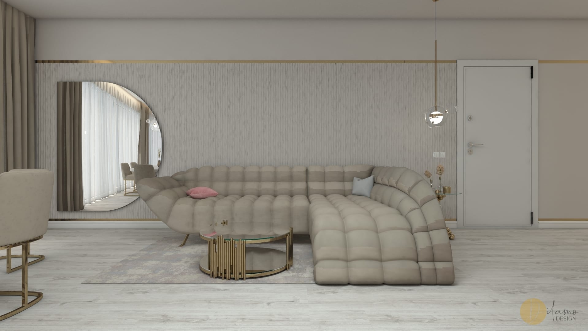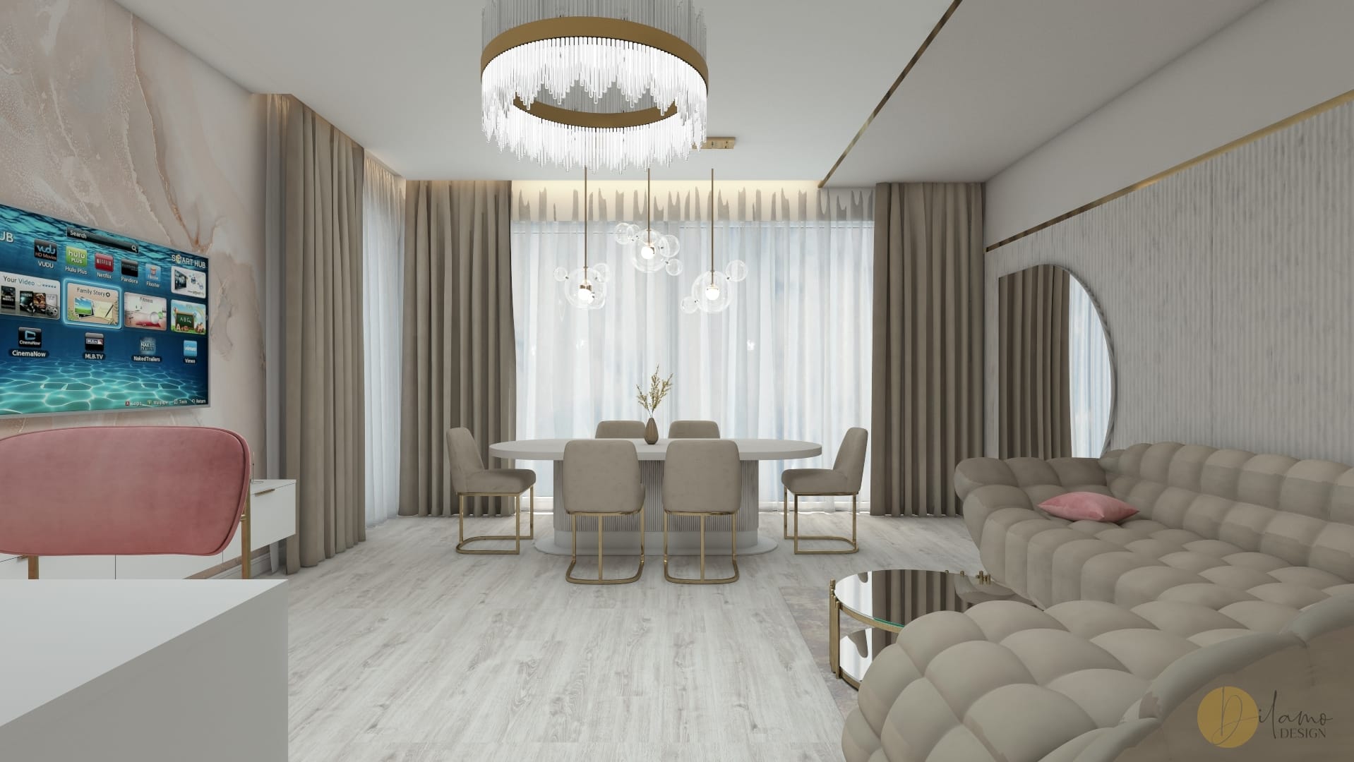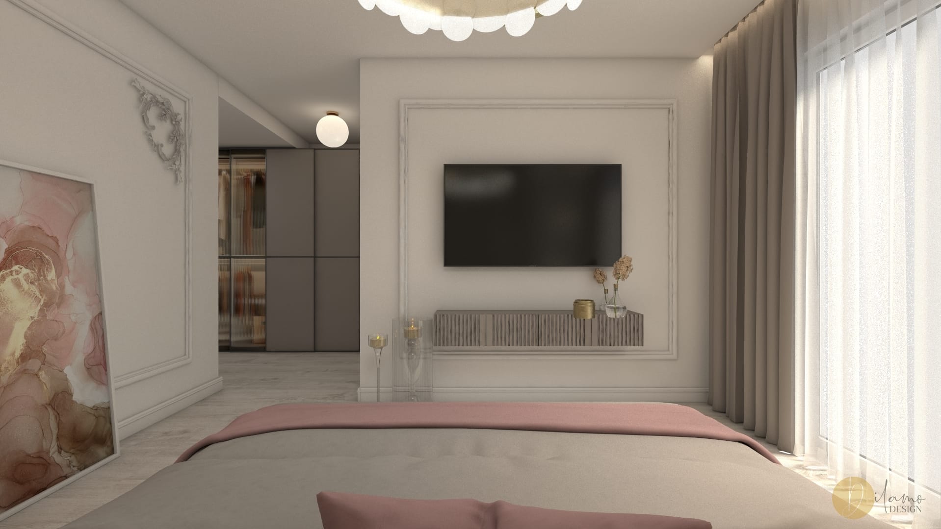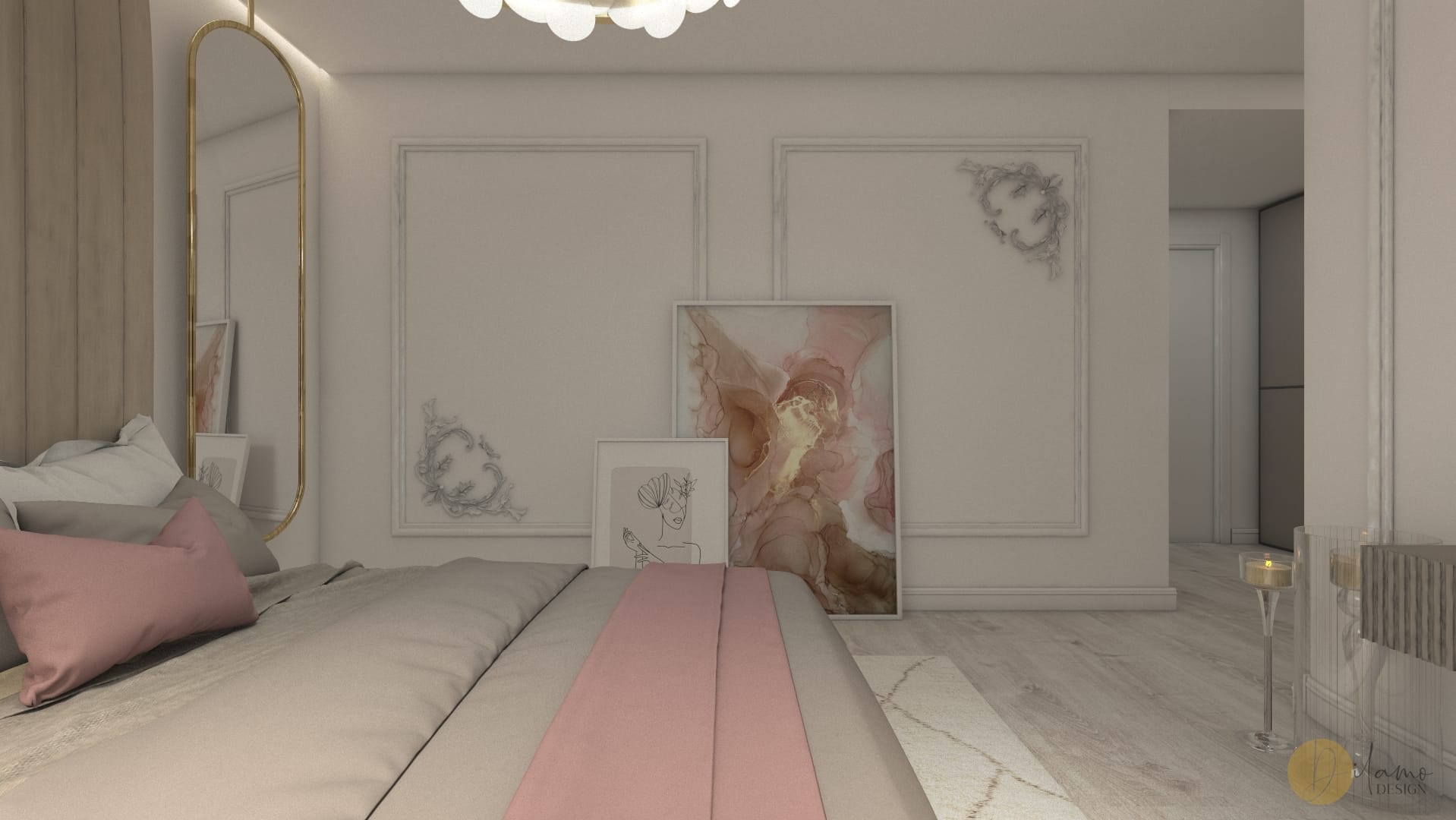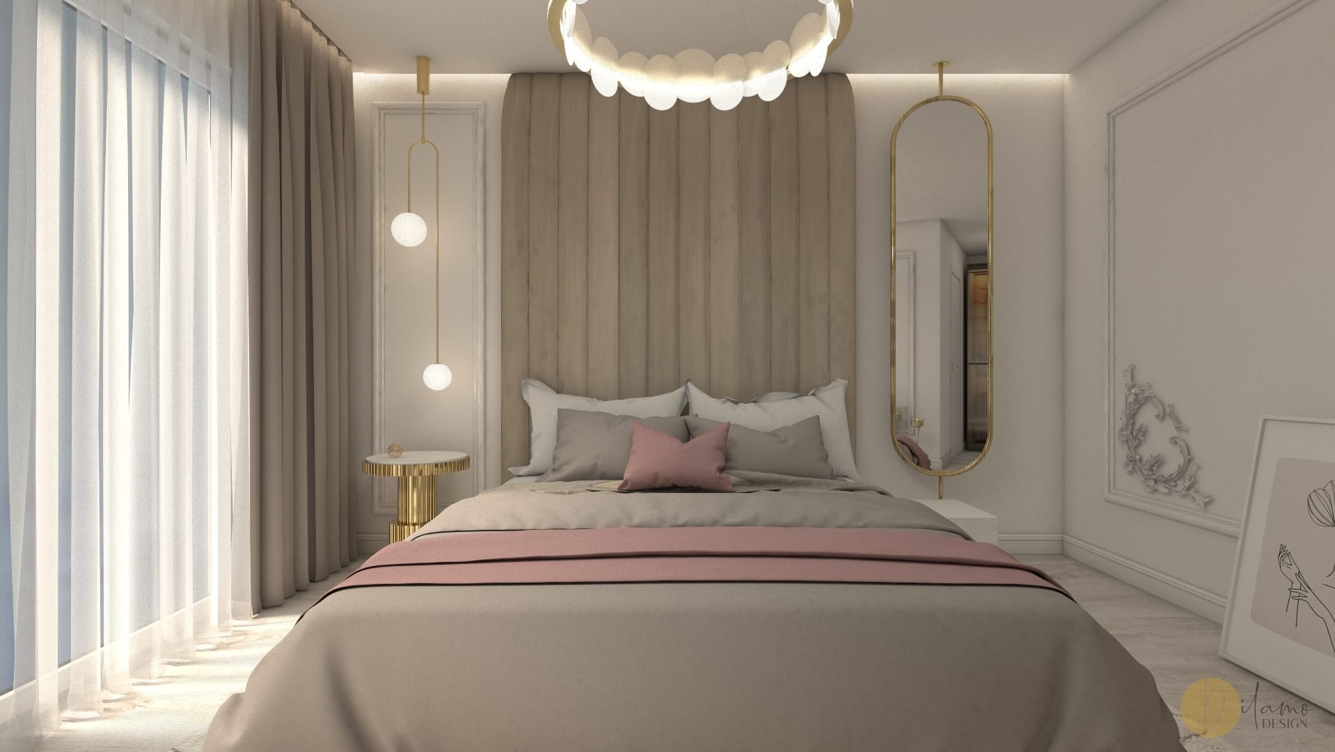 Culorile neutre și texturile fine combinate cu accentele de roz pudră și auriu pun în evidență personalitatea puternică și feminitatea unei domnișoare din București.