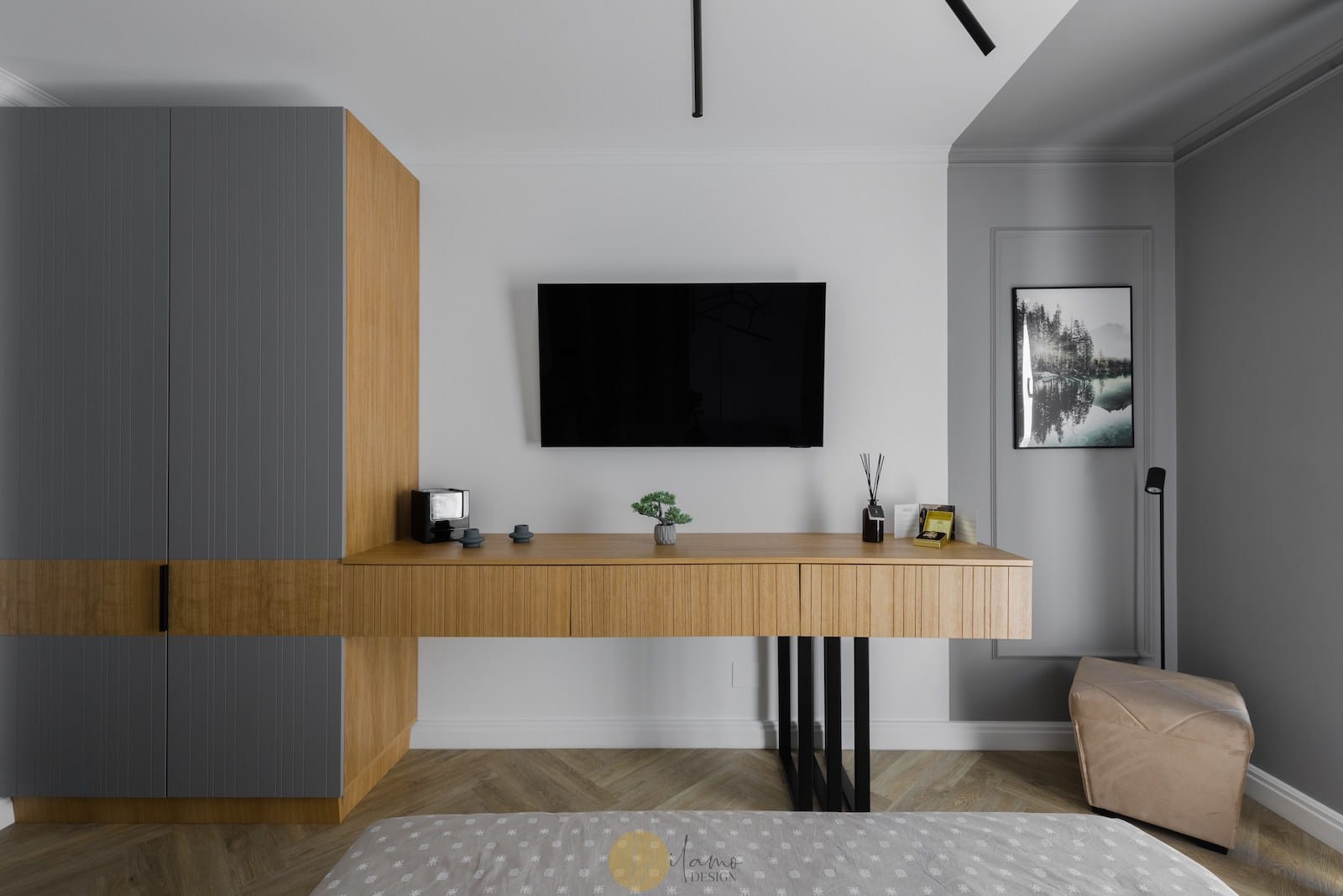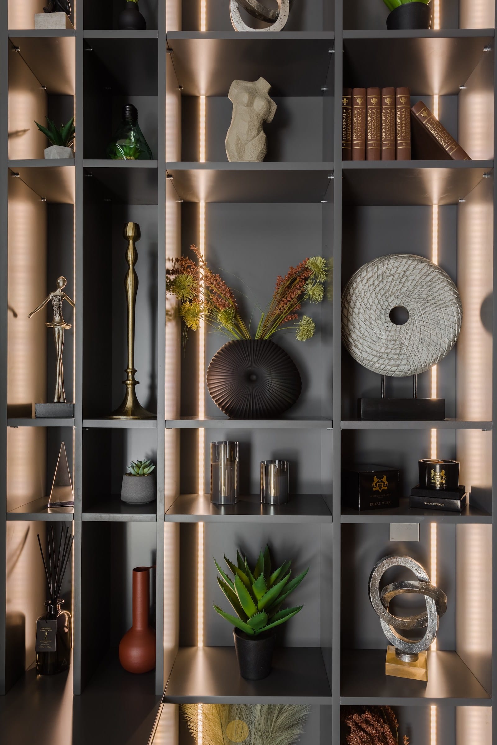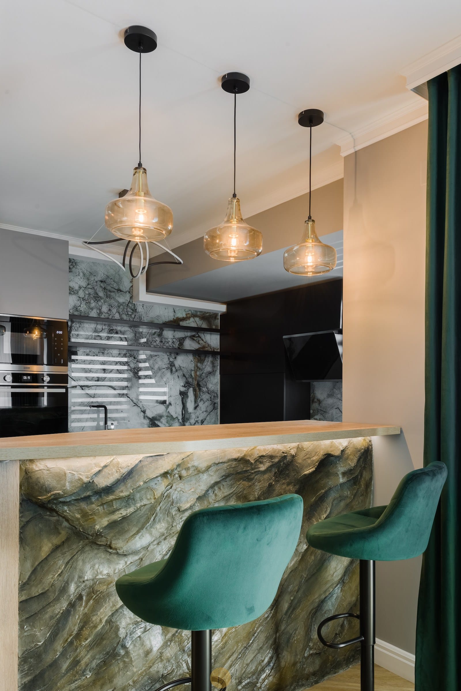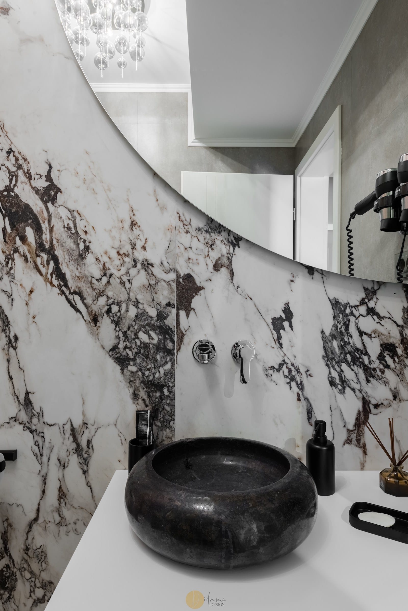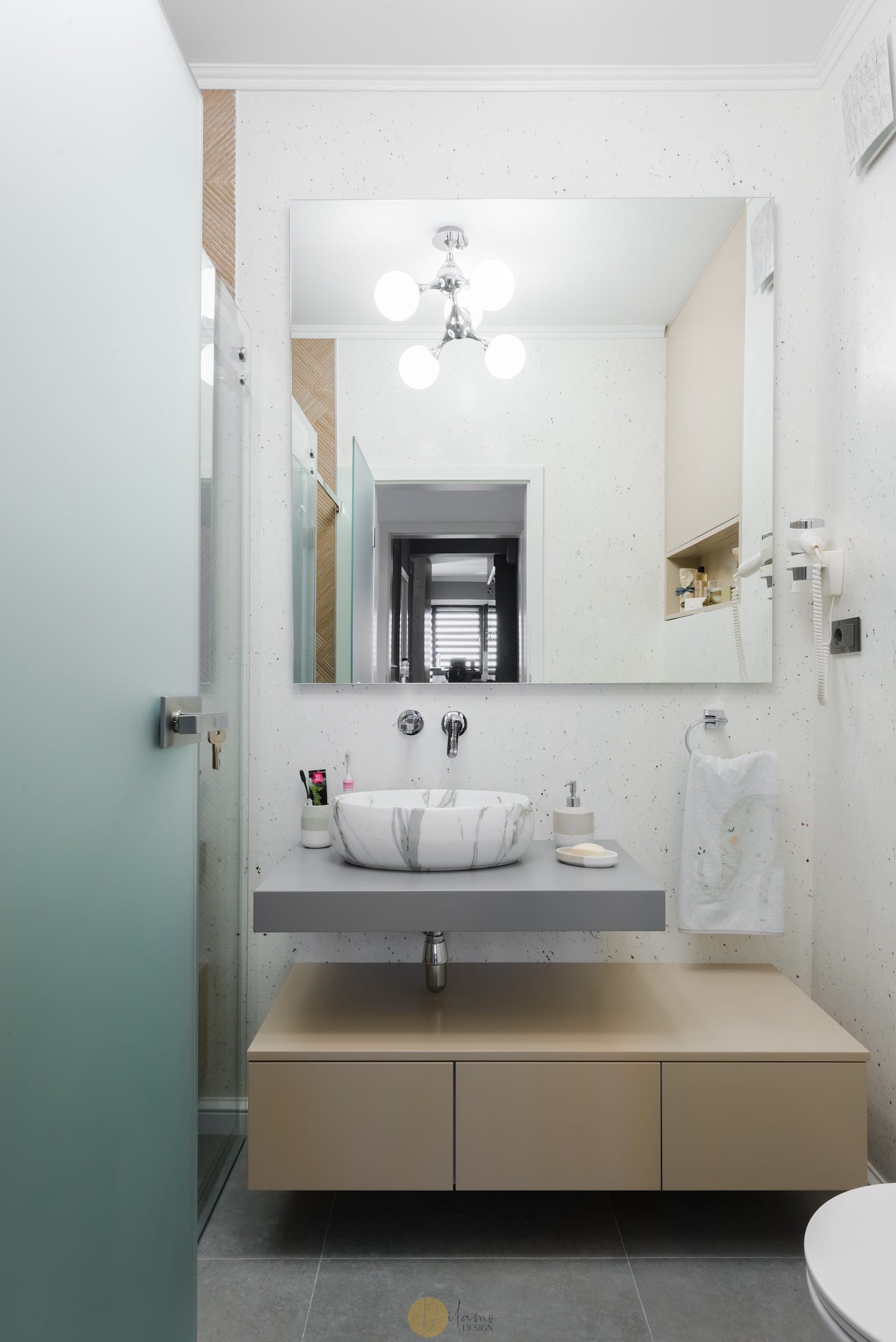 Combinația de elemente masculine avangardiste cu texturi calde și primitoare subliniază personalitatea unui tată puternic care împarte apartamentul cu fiica sa. Vinoteca și nuanțele puternice de negru și gri combinate cu naturalețea texturilor de lemn și a culorilor neutre creează un spațiu masculin, potrivit unui bărbat ce apreciază vinurile fine. În același timp, dormitorul fetiței combină culori blânde și feminine cu obiecte decorative unice și un tavan deosebit cu accente florale, construind astfel o atmosferă de feerie care invită la imaginație și conturează un spațiu protector.