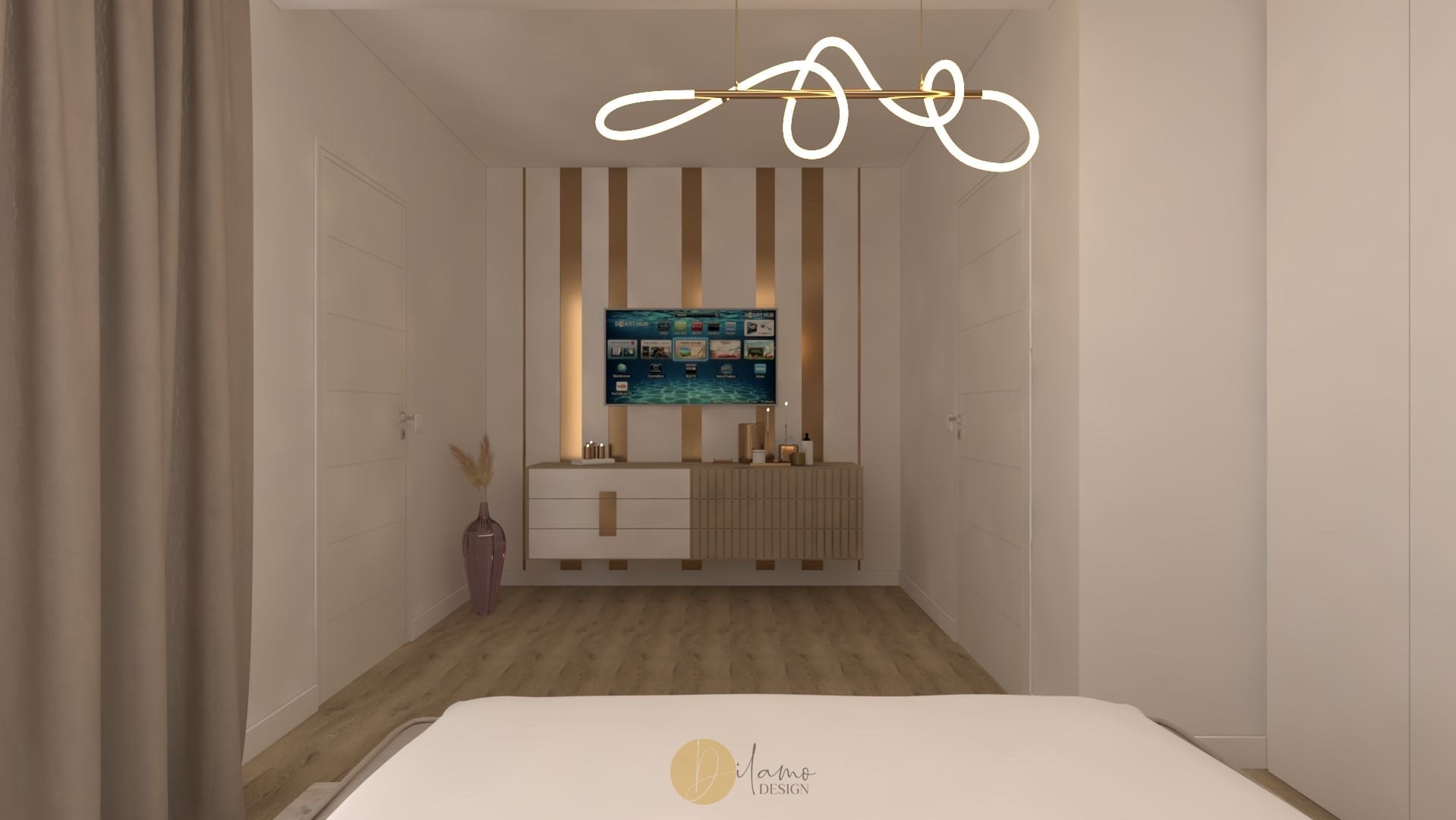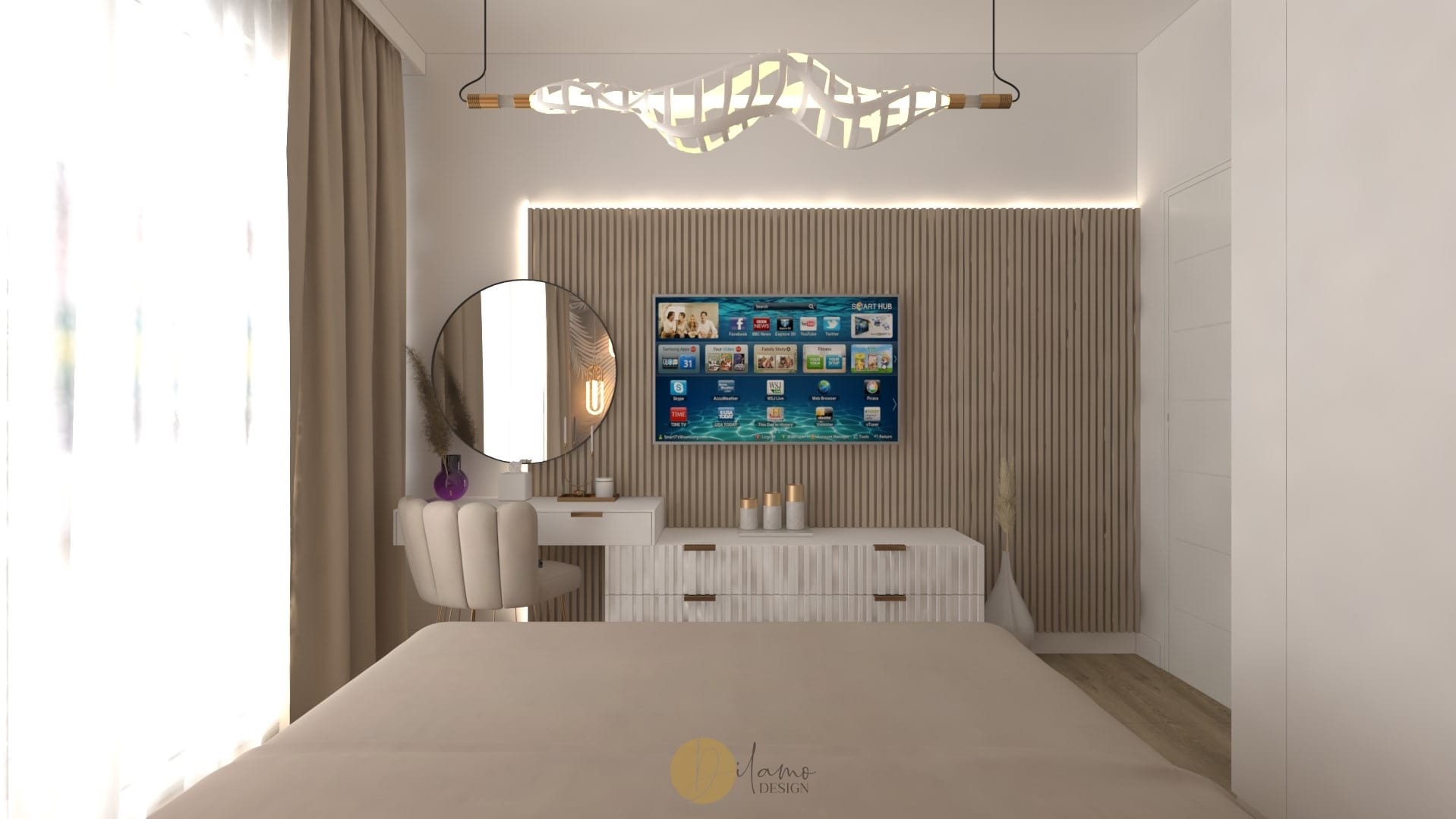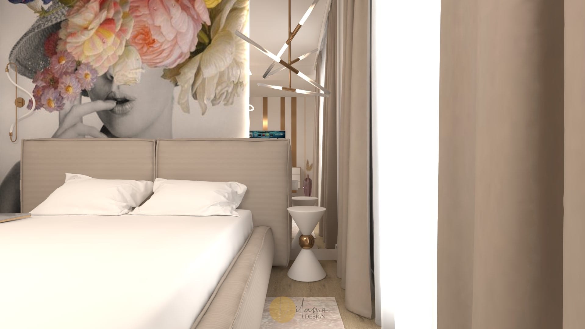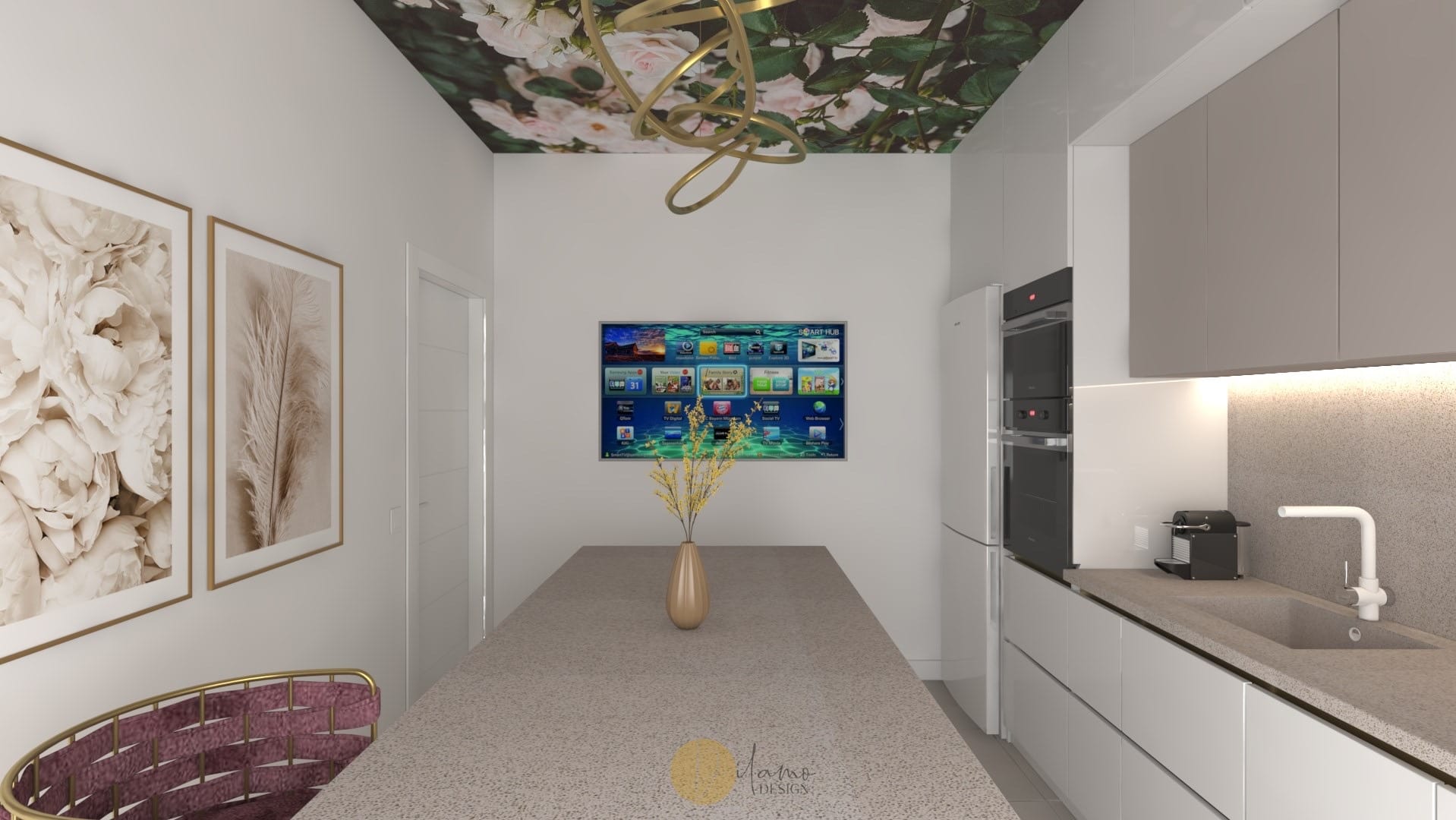 Marea si natura au fost inspiratia principala pentru acest proiect denumit de echipa noastra drept “tropical house”. Astfel, combinatiile eclectice sunt elementele principale care scot aceasta casa in evidenta. Tapeturile florale si tropicale utilizate pe peretii verticali, dar si pe tavan subliniaza personalitatea colorata a proprietarilor. De asemenea, corpurile de iluminat hi-tech, texturile de marmura si elementele de decor in forme diverse traseaza directia pentru o casa cocheta si rafinata.