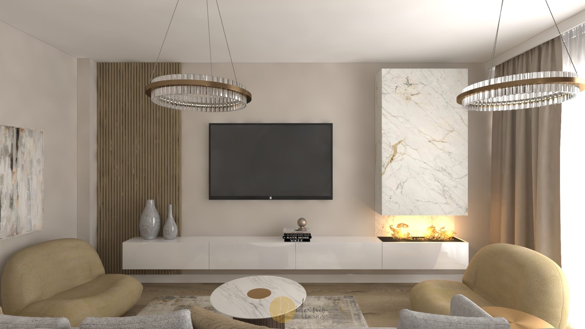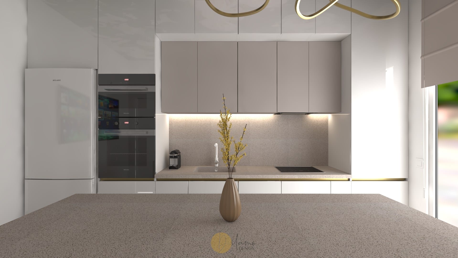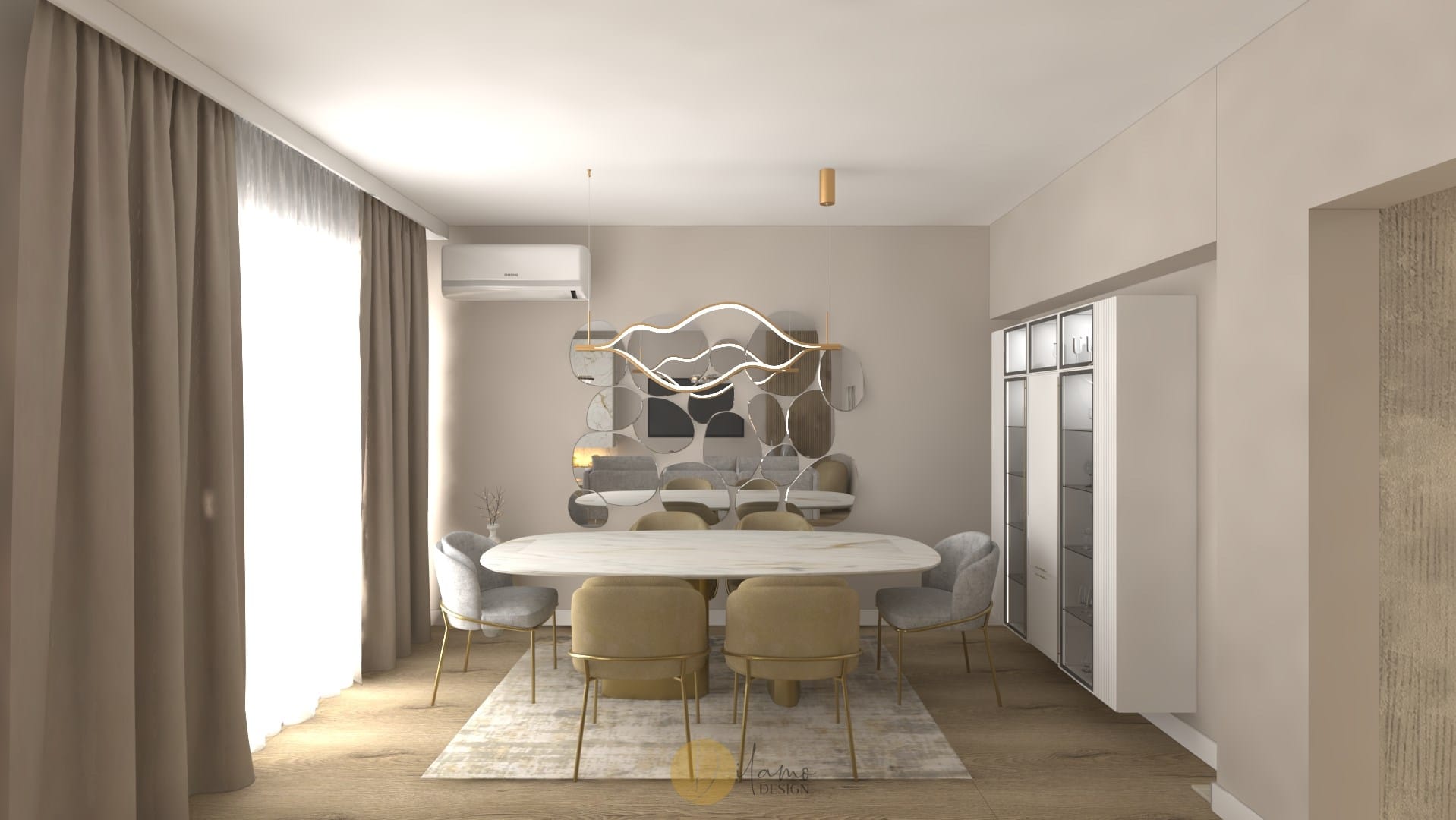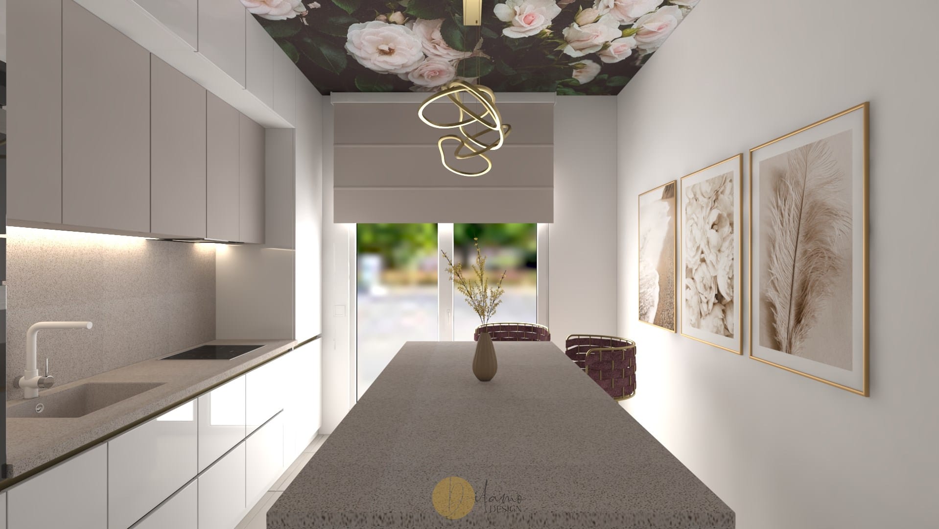 Marea si natura au fost inspiratia principala pentru acest proiect denumit de echipa noastra drept “tropical house”. Astfel, combinatiile eclectice sunt elementele principale care scot aceasta casa in evidenta. Tapeturile florale si tropicale utilizate pe peretii verticali, dar si pe tavan subliniaza personalitatea colorata a proprietarilor. De asemenea, corpurile de iluminat hi-tech, texturile de marmura si elementele de decor in forme diverse traseaza directia pentru o casa cocheta si rafinata.