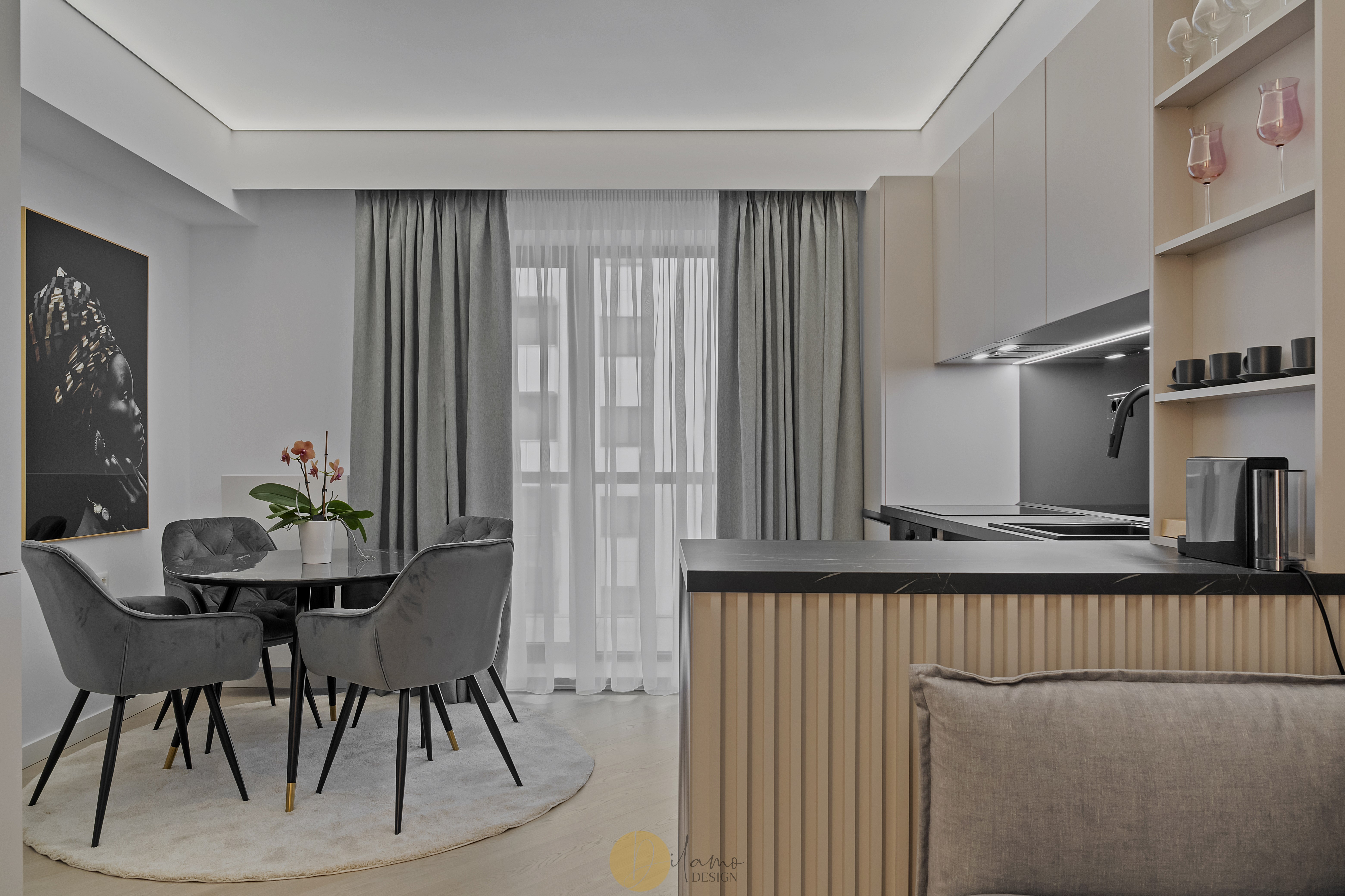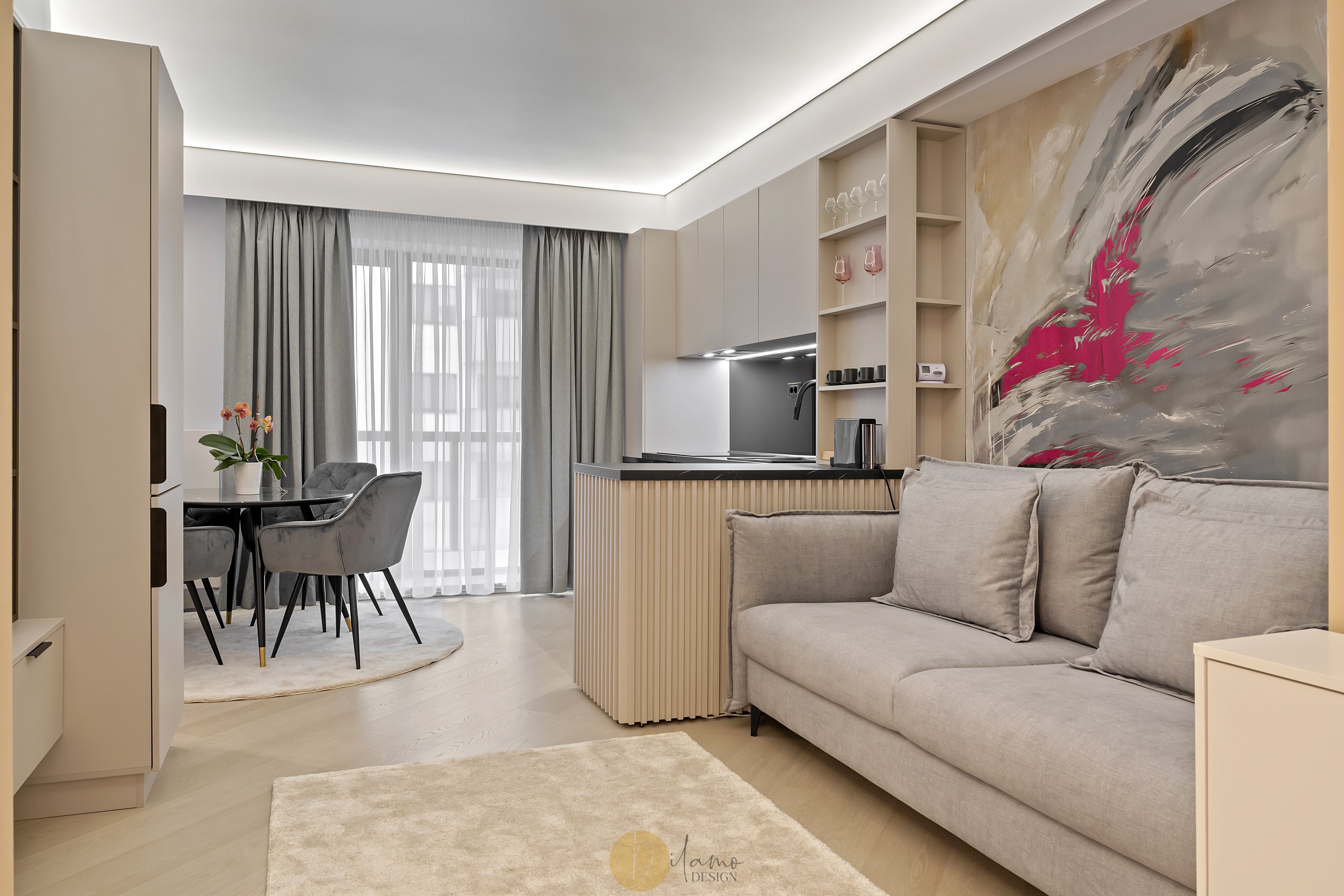 Descoperă noua amenajare Dilamo Design! Este un apartament cochet, intim, care te invită să te bucuri de spațiul tău personal. În culori calde, elegante și cu un tapet versatil și spectaculos, designul este gândit pentru a atrage toate gusturile.