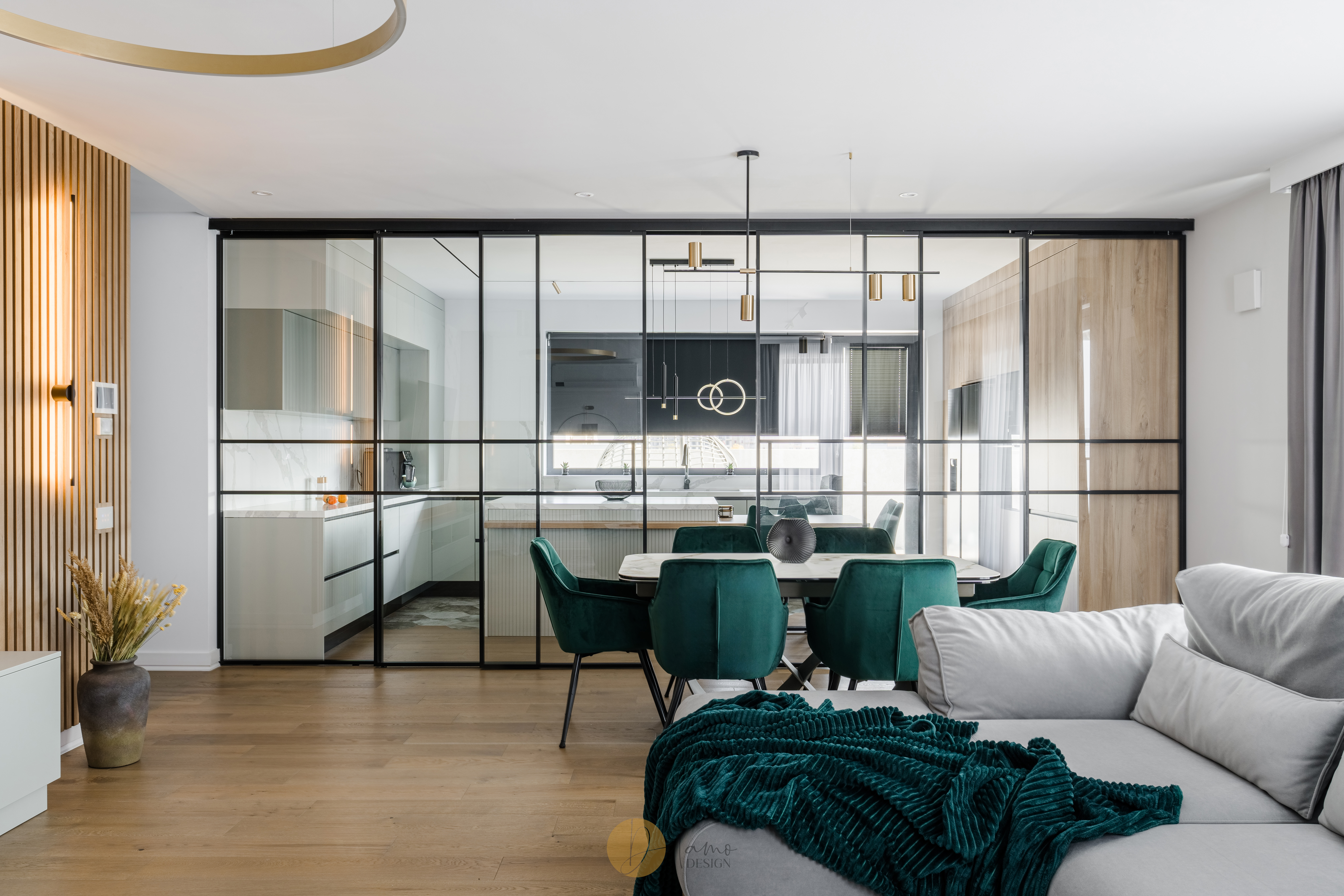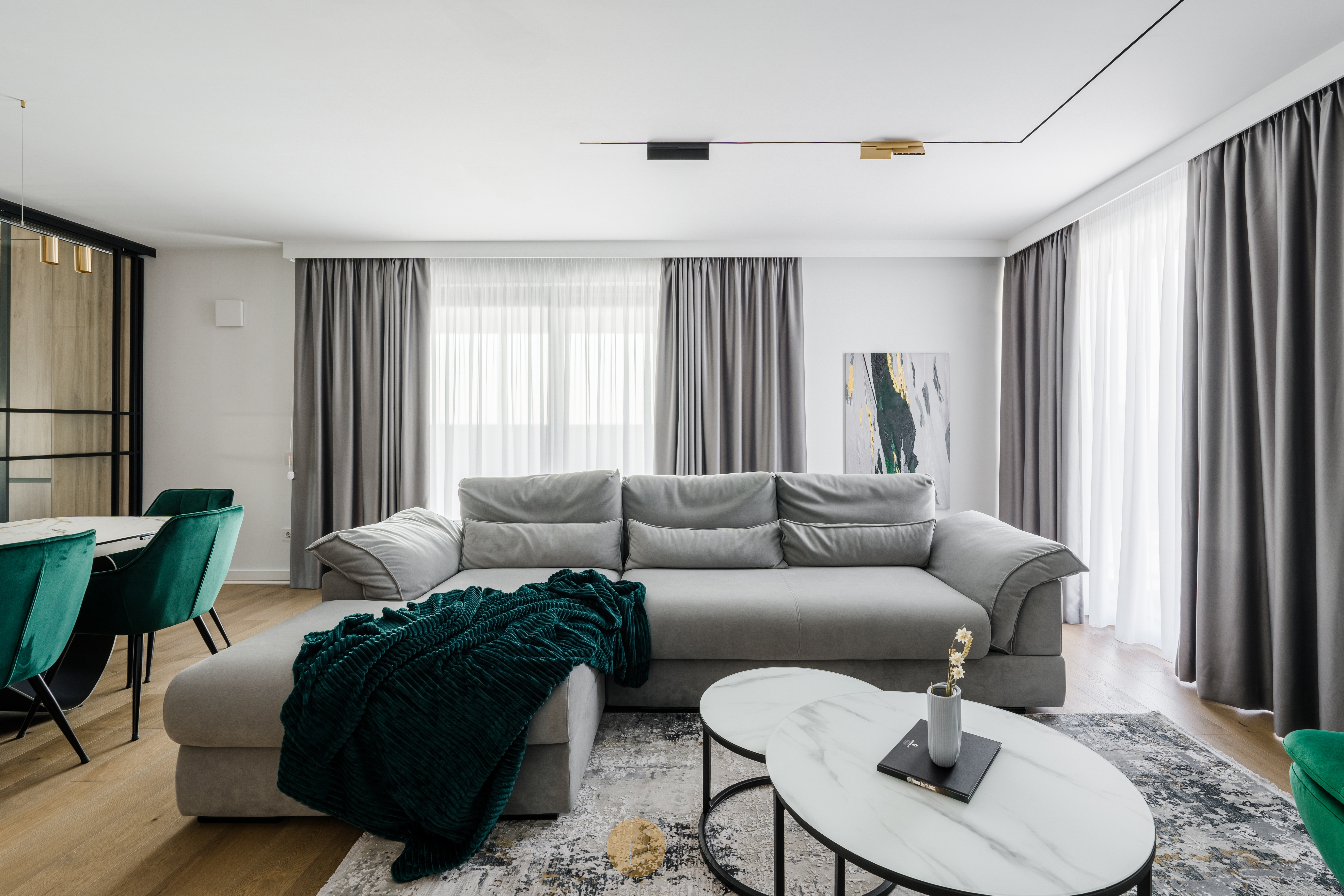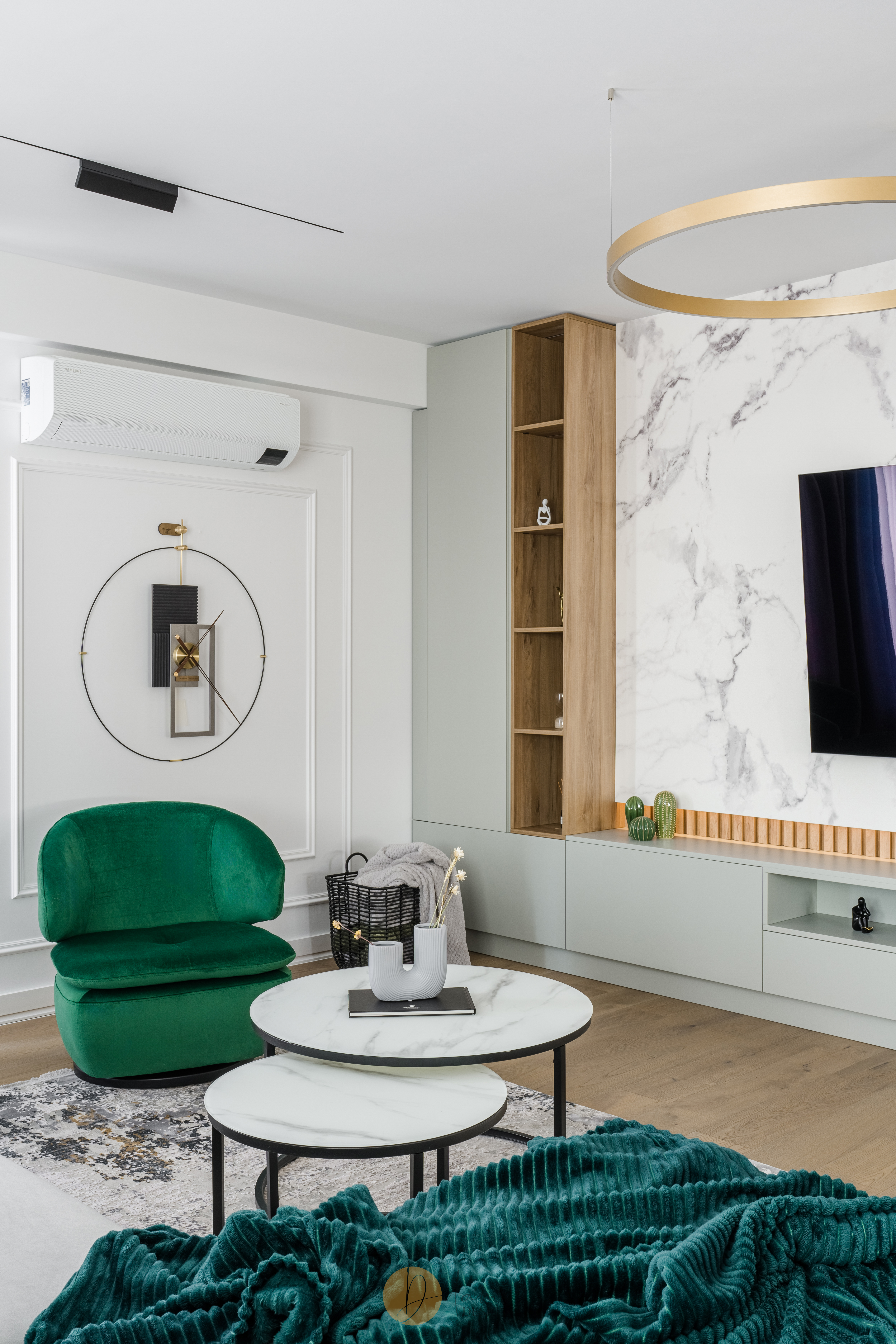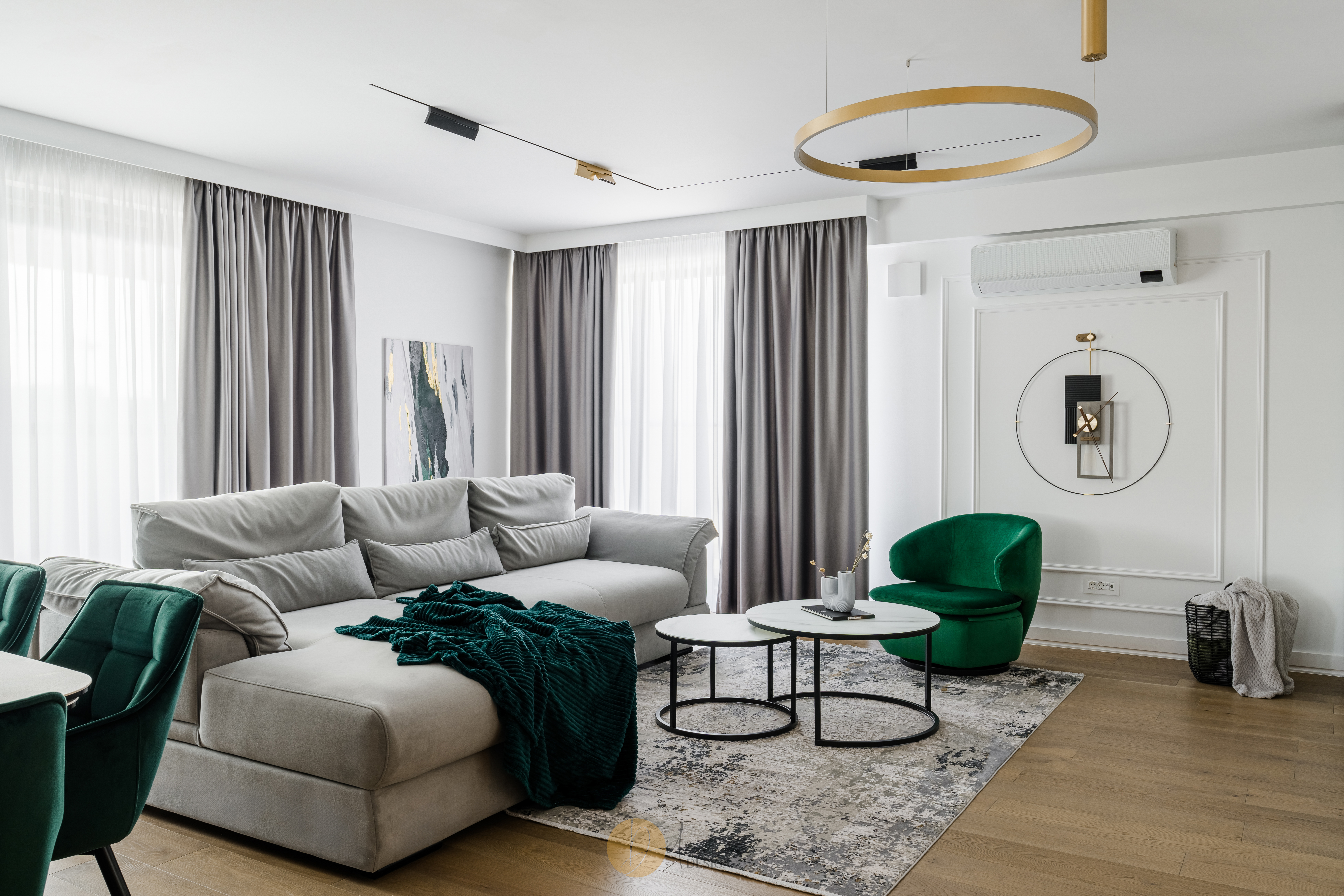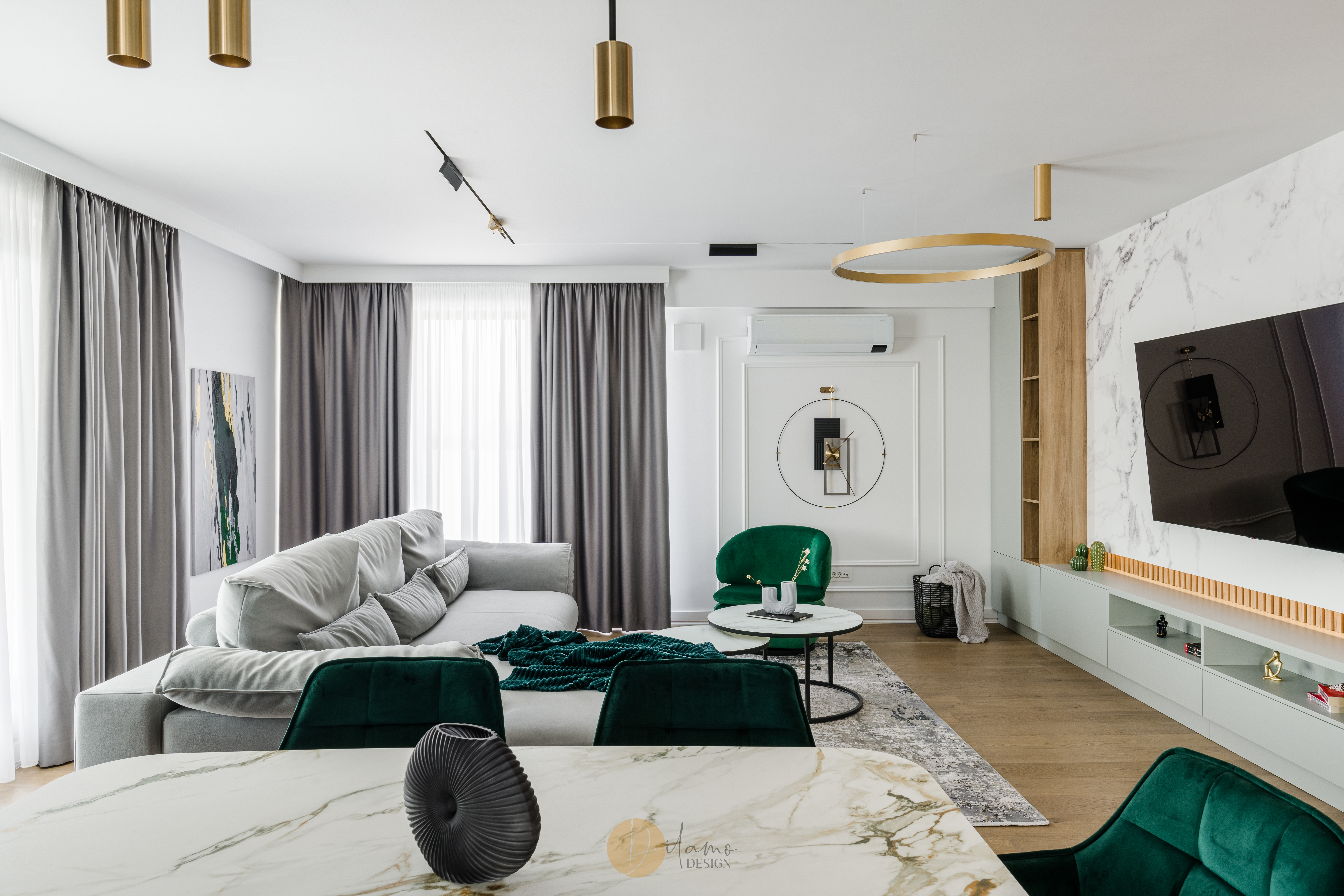 Descoperă o nouă amenajare completă Dilamo Design. Cu un aer modern, chic, este un spațiu primitor pentru noua familie care se va bucura de locuință. Accentele de verde vin cu un aer fresh și tonurile mate dau eleganță amenajării complete.